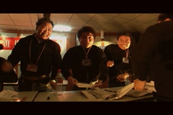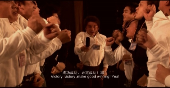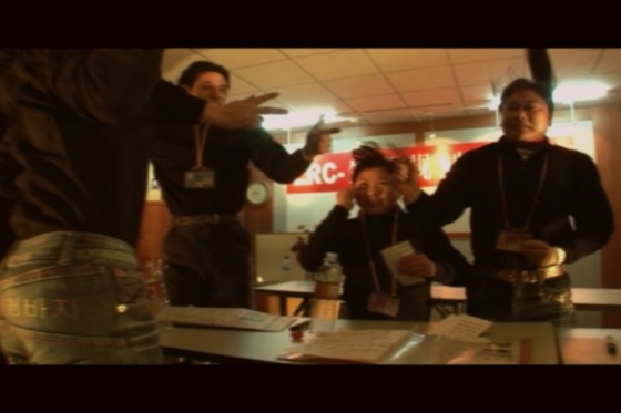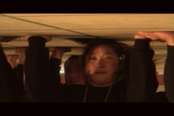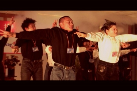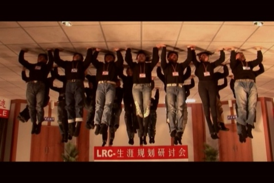 003,錄像“集訓營”起因于資本主義入侵全面勝利的某個典范,是資本主義道德控制的成功案例,它有效地挖掘了群體性的財富夢想,呈現出集體迷狂景觀。它通過身體的技術化訓練和道德規訓,實現自我否定、脫胎換骨、精神臣服。資本入侵對區域文化心態的集體改變是強制的也是心悅誠服的。集訓采用極端的訓練模式去開采和控制群體價值觀,以實現“我的靈魂由你管理,死心塌地”。訓練營培養集群的可操控度,使之易于被刺激、被秩序化管理、被沉迷、被奴役。訓練模式可以在某個小范圍的集群營地實現,更可以在政治空間、經濟領域或時尚領域拓展。