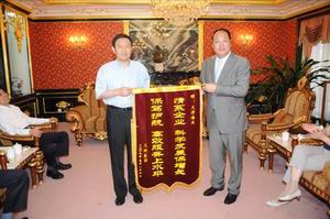 天獅集團總裁李金元就天獅集團的現狀和發展戰略,向到訪的各位領導做了介紹。黃關長對天獅集團的快速發展和天獅的企業文化贊不絕口,他高度評價了天獅人鍥而不舍的精神和強烈的社會責任感。如今,天獅在公益事業方面的投入已經達到14億多,窮則獨善其身,達則兼濟天下,天獅集團一直熱衷于回報社會。天獅不僅給世界人民送去了愛心,更傳播了中華民族的悠久文化。最后黃關長祝愿天獅明天更美好輝煌。