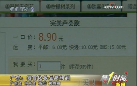 警方通過偵查,發(fā)現(xiàn)這些假冒化妝品背后有著一個嚴密的生產(chǎn)和銷售系統(tǒng)。將廣州白云區(qū)的一個制假窩點鎖定后,警方迅速展開抓捕。據(jù)嫌疑人交代,他們的銷售利潤非常大。網(wǎng)絡銷售人員 :(完美蘆薈膠)你們賣多少錢一支?我們有的賣24元 便宜的12元一支。制假窩點老板: 你那完美的蘆薈膠一支的成本大概是多少?全部做好1.5元一支。