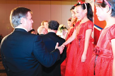 在21日晚舉行的招待晚宴上,由玫琳凱中國出資援建的北京市大興區禮賢鎮玫琳凱春蕾小學的6位小朋友也應邀來到晚宴現場,為兩國嘉賓分別演唱了中文歌曲《茉莉花》和英文歌曲《友誼地久天長》等四首歌曲。耳熟能詳的歌曲在孩子們甜美嗓音的演繹下更顯真摯動人,表達了中美兩國人民對彼此友誼的珍視與祝愿,贏得了兩國與會者的高度評價。