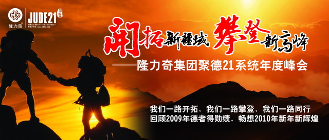 “勛績已隨舊歲往,新年更展宏圖來”。回顧2009年德者得勛績,暢想2010年新年新輝煌,2010年將是聚德21在隆力奇事業上具有重大意義的一年,聚德21將緊緊跟隨以隆力奇集團徐之偉董事長、尹總、錢總為代表的公司領導層,一起開拓新疆域,攀登新高峰。故此,新的一年,聚德21必將有力地動員和團結全國各地聚德21家人,繼往開來,與時俱進,開創建設隆力奇事業的新局面。聚德21將重點就中國大地的直銷業發展狀況及對隆力奇事業在這個行業的影響力,廣泛開展調查研究,為促進隆力奇集團直銷板塊全面協調可持續發展建言獻策;圍繞加強隊伍建設,以鞏固團隊建設與管理人才架構穩定為前提,在系統正規化,產業化方面取得新的成果,為隆力奇集團在中國直銷行業的市場份額多做實事;堅持走民族產業奮飛發展策略,并積極走出國門,向著國際化道路邁進,真正實現“百年隆力奇,世界隆力奇”的偉大夢想。聚德21與隆力奇集團各級領導緊密合作、共同致力于建設隆力奇直銷事業,以新的更大的成績迎接新的一年的到來,并向隆力奇集團直銷板塊正式開業獻上一份厚禮!