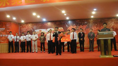 整個晚會無論是流程設計還是在晚會內容都是驚喜不斷,高潮迭起,特別是特等獎的抽出,讓獲獎人員激動不已。系統領導人之一歐圣君先生為伙伴們做了精彩的總結,并帶來了一副經典的對聯,道出了他本人成功的秘訣,為市場一線的伙伴們帶來了信心。