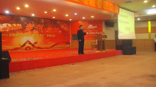 太陽神直銷事業部總經理張鳴先在總結大會上作了重要講話,他指出:“太陽神直銷事業正處在天時、地利、人和的最佳時期,2010年也將是太陽神快速發展的一年。”張總肯定了正合系統春耕萬里行活動所取得的成績,同時,也對正合系統提出了更高的發展要求,希望這支年輕有活力的隊伍在2010年能夠再接再勵,再創佳績!張總務實的分析,深度的講解,給了伙伴們極大的鼓舞,會場氣氛十分熱烈,掌聲此起彼伏。