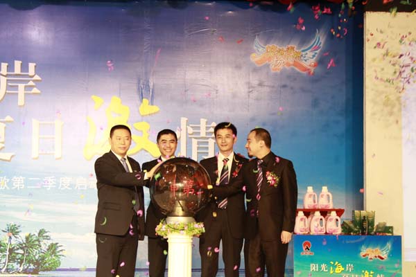 2010年3月31日,海口市海航國際商務酒店一樓宴客廳內人聲鼎沸,熱鬧非凡。這里正在舉行的是“陽光海岸 夏日激情”——太陽神四季飛歌第二季度啟動大會。近千名參加“三亞•陽光之旅”的績優經銷商歡聚一堂,共同分享了三亞旅游的歡樂和激情,見證了太陽神2010年第一季度的發展與成績,展望了公司四季飛歌第二季度戰略規劃的機遇和前景。會場上掌聲、歡呼聲此起彼伏,既是為第一季度的成績而歡呼,更為第二季度的規劃而滿懷激情。