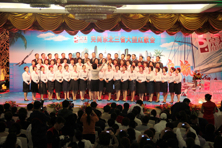 首先,由完美遼寧分公司鄭鐵良高級經理致歡迎辭。鄭經理首先對胡總裁以及東北三省完美伙伴的到來表示歡迎,對胡總裁給予東北三省的厚愛表示誠摯的感謝,并且代表全場完美伙伴,以傳統文化的禮儀,向胡總裁深深地鞠一躬!接著,鄭經理介紹了此次活動的舉辦目的:通過唱紅歌,表達對祖國母親的熱愛,同時為即將遠赴夏威夷的7位資深客戶總監和暢游寶島臺灣的326位完美伙伴表示祝賀。隨后,鄭經理對總公司的支持表示感謝,并號召東北三省的完美朋友們緊緊跟隨總公司腳步,精誠團結,和諧共進,為東北三省的大發展、大突破、大跨越,為實現“百年完美,全球完美”做出我們應有的貢獻!
