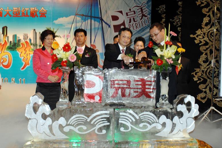“為祖國歌唱、為夢想啟航”,嘹亮的歌聲唱響了完美騰飛的華美樂章,一組組大合唱,展現出東北三省完美伙伴團結合作,和諧發展的勢頭。劉穎、李文峰、張惠風、賀桂琴這幾位即將遠赴美國夏威夷海外研討的資深客戶總監先后上臺分享,他們的分享無疑給在場每一位參會者點亮了一盞明燈,不但看到了完美事業的發展,更看到了完美輝煌的明天。大會最后環節,所有即將遠赴夏威夷的資深客戶總監以及各省分公司負責人共同登臺,啟動幸運球,當幸運球放射出“為夢想啟航”的時候,會場再次沸騰。香檳開啟,注入到嵌有完美logo的冰雕時,所呈現出的晶瑩剔透完美logo再一次感動了在場所有完美人的心,看到舞臺上完美logo綻放的光彩就像看到了自己美好的未來。臺上的嘉賓為所有參加海外研討會的完美精英們祝福,祝他們一帆風順!