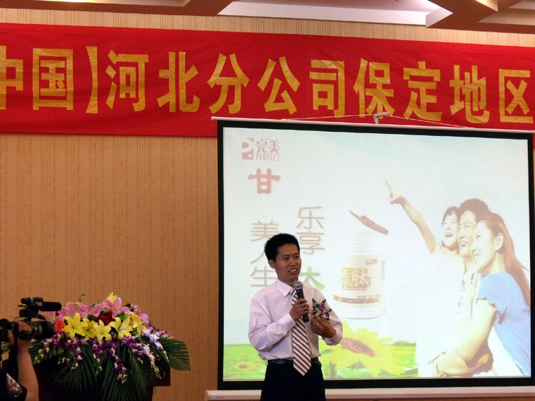 河北分公司業務主任常進豐首先為大會致詞,感謝保定地區完美伙伴多年來對完美公司的熱愛與支持。會議開始播放短片《競爭上崗》引得在場觀眾開懷大笑的同時理解“知識改變命遠”的深刻寓意。詼諧幽默的李昕暉總監為大家帶來一堂《甘美人生,樂享太平》玉米肽知識講解,風趣幽默,通俗易懂的語言將玉米肽如何保肝護肝營養知識展示給在場聽眾,贏得全場觀眾熱烈掌聲!美麗優雅的王麗君總監為聽眾講解《瑪麗艷美的觀念》,在場聽眾懂得如何做一名內外兼修,魅力可人的瑪麗艷女性。
