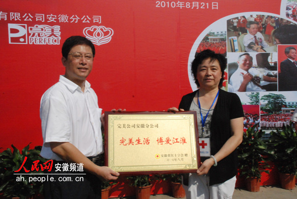 據(jù)悉,截至2009年,完美公司組織的大規(guī)模無償獻(xiàn)血活動(dòng)累計(jì)獻(xiàn)血總?cè)藬?shù)超過12萬人次,總獻(xiàn)血量超過3000萬毫升,拯救了數(shù)萬人的生命,受到了國(guó)家衛(wèi)生部、中國(guó)紅十字總會(huì)等相關(guān)部門的嘉獎(jiǎng)。"七年來,完美公司一直關(guān)注和支持無償獻(xiàn)血事業(yè),做出了突出的貢獻(xiàn),在希望工程、西部開發(fā)、慈善救災(zāi)、體育醫(yī)療和擁軍優(yōu)屬等多個(gè)領(lǐng)域都奉獻(xiàn)著愛心。"安徽省紅十字會(huì)黨組成員、專職副會(huì)長(zhǎng)馬元淮接受本網(wǎng)采訪時(shí)表示。