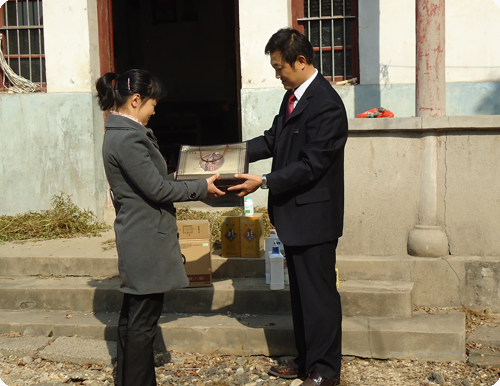 薛士權先生帶領揚州團隊成員親自去揚州市儀征月塘鄉慰問“揚州好人”倪玲以及她身患癌癥晚期的父親,并且帶去了捐款和大家自發捐的隆力奇的產品。揚州電視臺對此進行現場采訪。