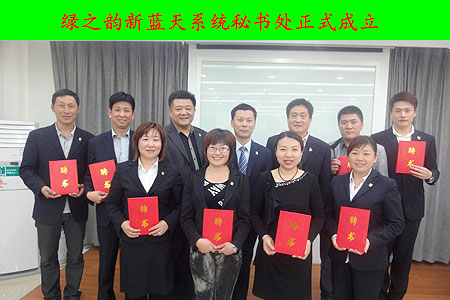 2012年4月26日下午,綠之韻山東分公司新藍(lán)天系統(tǒng)秘書處正式成立,山東分公司經(jīng)理孫自智與系統(tǒng)領(lǐng)導(dǎo)人譚佃選、申文高參加了成立會(huì)議并分別為秘書處十位成員頒發(fā)了聘書。此次新藍(lán)天系統(tǒng)秘書處的成立,將更好的服務(wù)于綠之韻新藍(lán)天系統(tǒng)各項(xiàng)業(yè)務(wù),為綠之韻事業(yè)在山東的發(fā)展提供組織支持。