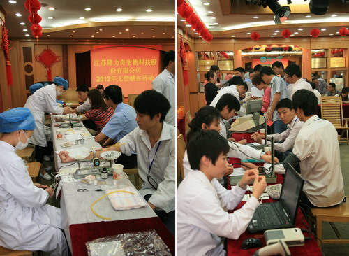 日前,隆力奇公司組織無償獻血活動,得到了百余名隆力奇人的積極響應。獻血活動是從早上8點起,剛剛做完準備工作就有隆力奇員工來獻血,本來還比較寬敞的底樓大會議室不多時就顯的擁擠。上至公司領導,下到普通員工,都來到無償獻血現場。