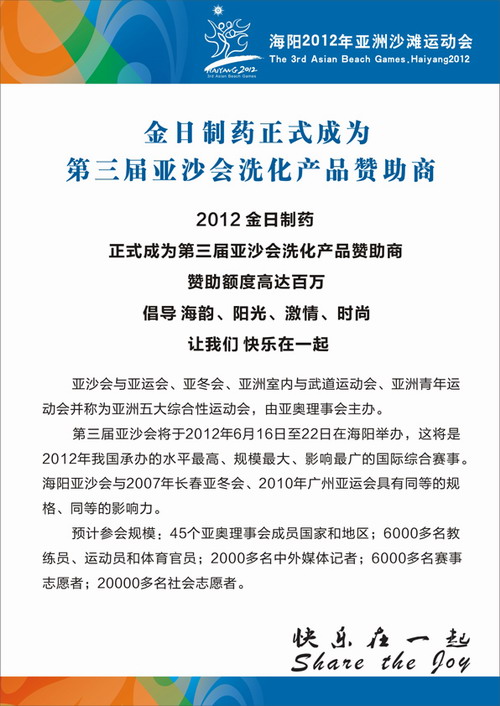 金日正式成為第三屆亞沙會洗化產品贊助商