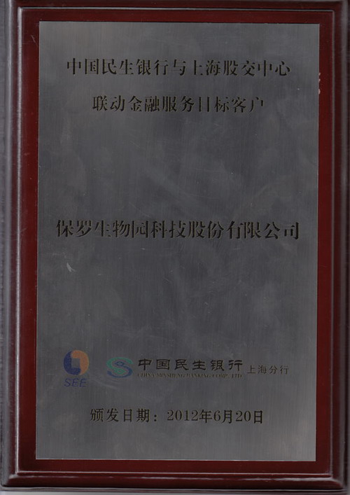2012年6月20日,中國(guó)民生銀行上海分行與上海股權(quán)托管交易中心在民生銀行大廈共同舉辦了向股交中心掛牌企業(yè)主動(dòng)授信的儀式。保羅生物作為上海股交中心的首批掛牌企業(yè)應(yīng)邀參加,財(cái)務(wù)總監(jiān)顧恒先生代表企業(yè)出席了儀式。
