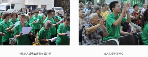 2012年6月21日,中脈分公司和當地經銷商共計20余人一同來到深圳市福田福利中心舉辦“中脈孝德行”活動,旨在進一步弘揚孝德傳統,傳承孝德文化,通過實際行動帶動社會去關注老人的身心健康發展。