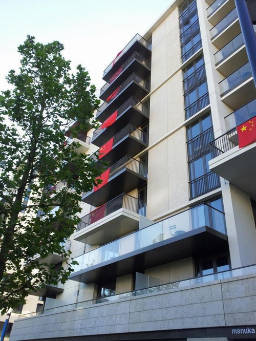 陳楠的老搭檔苗立杰則向大家展示了奧運村內中國國旗的威武,“我們的村子、國旗很有氣勢吧!”