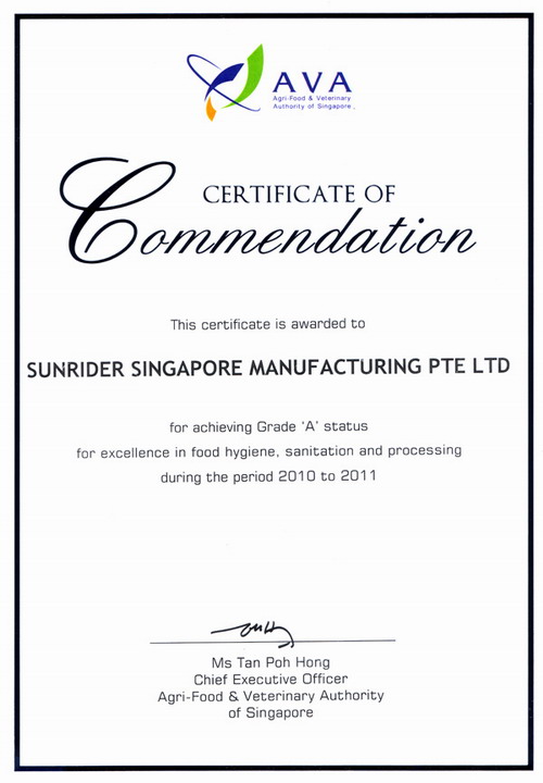 仙妮蕾德新加坡生產廠房最近榮獲新加坡農糧獸醫局(AVA)頒發的〝A〞級評級,以表揚它在2010 - 2011年期間在食物衛生、衛生設備及加工過程方面的卓越表現。自1998年開始投入生產以來,仙妮蕾德新加坡生產廠房每一年都獲頒此崇高殊榮。