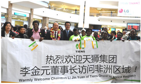 2012年10月31日清晨,南非約翰內斯堡機場人山人海,他們膚色不同,語言各異,服飾也獨具各國各民族特色,秩序井然地站在出站口,翹首期盼。他們為了相同的目的從四面八方相聚在一起--熱烈歡迎天獅集團李金元董事長訪問非洲區域。