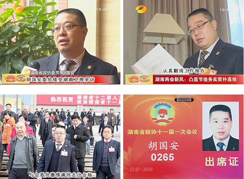 會(huì)議期間,省十一屆政協(xié)委員還集體列席了湖南省第十二屆人民代表大會(huì)第一次會(huì)議,會(huì)議由省委書(shū)記周強(qiáng)支持,省長(zhǎng)徐守盛代表省人民政府作工作報(bào)告。報(bào)告圍繞經(jīng)濟(jì)發(fā)展、兩型社會(huì)建設(shè)、民生事業(yè)改善等內(nèi)容,對(duì)過(guò)去5年進(jìn)行回顧,并就如何推動(dòng)經(jīng)濟(jì)持續(xù)健康發(fā)展、建設(shè)天藍(lán)地綠水凈湖南、為民辦實(shí)事等做出重要部署。此次報(bào)告中有三個(gè)關(guān)鍵點(diǎn):一是加快推進(jìn)新型城鎮(zhèn)化,二是建設(shè)天藍(lán)地綠水凈湖南,三是以創(chuàng)業(yè)帶動(dòng)就業(yè)。值得關(guān)注的是,報(bào)告中提及的這三點(diǎn)與胡國(guó)安委員在擔(dān)任第十屆委員期間提交的提案《關(guān)于全力促進(jìn)我省縣域經(jīng)濟(jì)發(fā)展的建議》和本次提交的兩份提案形成了完美的契合、達(dá)到高度的一致。在擔(dān)任第十屆省政協(xié)委員的五年時(shí)間里,胡國(guó)安委員始終圍繞我省“四化兩型”戰(zhàn)略,圍繞人民群眾最關(guān)心最直接最現(xiàn)實(shí)的利益問(wèn)題積極建言謀策,提交的提案《關(guān)于全力促進(jìn)我省縣域經(jīng)濟(jì)發(fā)展的建議》引起廣泛關(guān)注,被湖南衛(wèi)視、湖南經(jīng)視、《湘聲報(bào)》先后報(bào)道,并被評(píng)為“政協(xié)湖南省第十屆委員會(huì)優(yōu)秀委員”。此次,再次當(dāng)選省十一屆政協(xié)委員,胡國(guó)安委員經(jīng)過(guò)前期充分的考察調(diào)研,向大會(huì)組委會(huì)遞交了兩份提案《加強(qiáng)大氣污染防治工作,優(yōu)化我省環(huán)境質(zhì)量,大力推進(jìn)生態(tài)文明建設(shè)的建議和》、《提升全民創(chuàng)業(yè)質(zhì)量,建設(shè)創(chuàng)業(yè)創(chuàng)新型湖南的建議》,再次受到多家媒體的關(guān)注和與會(huì)委員的廣泛認(rèn)同。提案中,圍繞“生態(tài)湖南、綠色湖南”為出發(fā)點(diǎn),胡國(guó)安委員建議科學(xué)制定城市發(fā)展規(guī)劃,優(yōu)化城市區(qū)域功能和產(chǎn)業(yè)結(jié)構(gòu),著力打造瀏陽(yáng)河生態(tài)風(fēng)光帶,把瀏陽(yáng)河打造成湖南“賽納河”,加快建設(shè)天藍(lán)地綠水凈湖南。在民生事業(yè)改善方面,胡國(guó)安委員深入中小企業(yè)走訪調(diào)查,結(jié)合我省全民創(chuàng)業(yè)現(xiàn)狀,建議創(chuàng)造公平競(jìng)爭(zhēng)的創(chuàng)業(yè)就業(yè)政策環(huán)境,鼓勵(lì)青年自主創(chuàng)業(yè),以創(chuàng)業(yè)帶動(dòng)就業(yè),大力發(fā)展實(shí)體經(jīng)濟(jì),拓寬融資渠道,建立完善的社會(huì)化服務(wù)體系,提高中小企業(yè)市場(chǎng)競(jìng)爭(zhēng)力,全面提升我省全民創(chuàng)業(yè)質(zhì)量,促進(jìn)全省經(jīng)濟(jì)社會(huì)持續(xù)、健康發(fā)展。