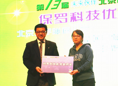 在閉幕式上,武慶先生為北京大學附屬小學創(chuàng)意項目輔導教師頒發(fā)了“保羅科技優(yōu)秀教師獎”, 用以支持和獎勵在教學領(lǐng)域做出突出貢獻的教師。保羅生物從2012年3月起,與中國科學院廣州生物醫(yī)藥與健康研究院、中科院研究生教育基金會、河北農(nóng)業(yè)大學等多家學校簽訂了保羅生物獎學金協(xié)議,迄今為止共惠及優(yōu)秀師生數(shù)百余人。