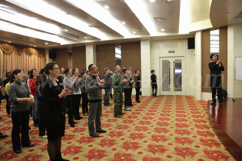3月4日下午,安惠會議中心三樓和融廳里其樂融融,掌聲不斷,時不時地還傳來陣陣歡歌笑語。60多名安惠員工在培訓老師的引導下,通過各種內涵豐富、寓意深刻的活動,獲得不一樣的人生感悟和心靈震憾:只要懂得用愛心來匯聚無窮的力量,一切皆有可能,希望就在我們的腳下,夢想就在我們的前方。這也是安惠商學院2013年舉行的首期員工培訓。