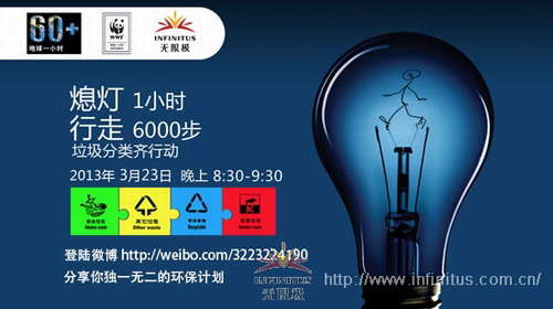2013年3月23日(星期六)晚20:30-21:30,“地球一小時(shí)”活動(dòng)將再次在全球接力展開。