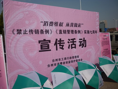 此次宣傳活動中,隆力奇公司以派發宣傳廣告傘的方式參與其中,寓意提醒消費者共同參與反對欺詐,切實保護合法權利,增強臺州市民對隆力奇的認知度。整個會場充滿著歡樂祥和的氣氛。