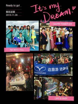 這一次也是我有生以來第一次乘坐這么大的游輪第一次出國旅游,我把旅行的照片發到朋友圈家鄉的人朋友看到我的旅游照片都很羨慕,還走出國門了,都不敢相信,這是真的。說實現的,我也不敢想信,就這樣不知不覺的踏出國門旅游啦!wv給了我太多的第一次,真的太開心太幸福了。